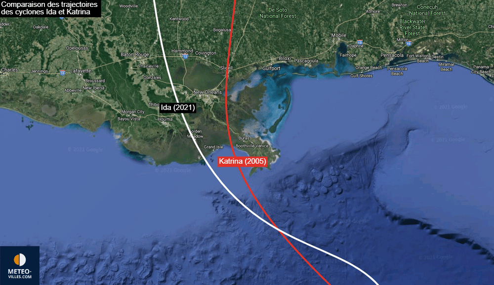 Comparaison des trajectoires de Katrina en 2005 et d'Ida en 2021 – Météo-Villes