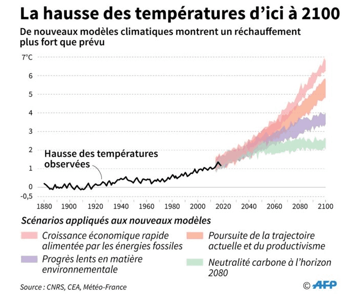 Projection de la hausse de la température mondiale d'ici 2100 - via AFP
