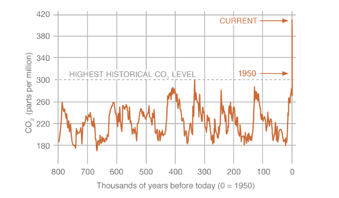 Taux de CO2 sur Terre de l'an -800.000 à aujourd'hui - via NASA / NOAA