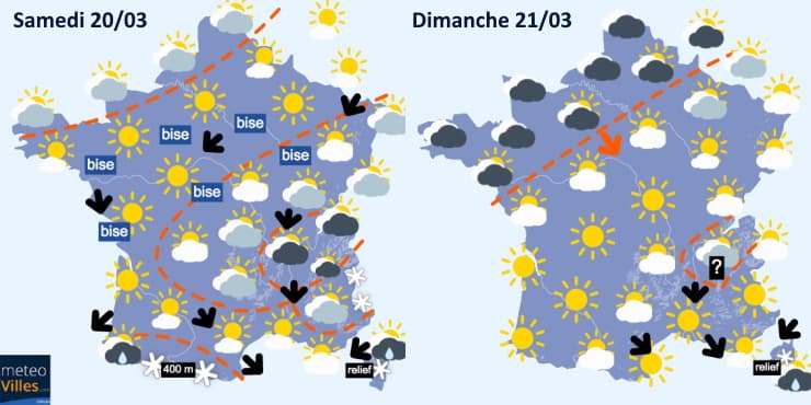 Prévisions pour les samedi 20 et dimanche 21 mars 2021 - Météo Villes