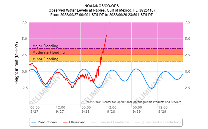 Onde de tempête mesurée à la station de Naples (Floride) ce mercredi 28 septembre 2022 - via NOAA