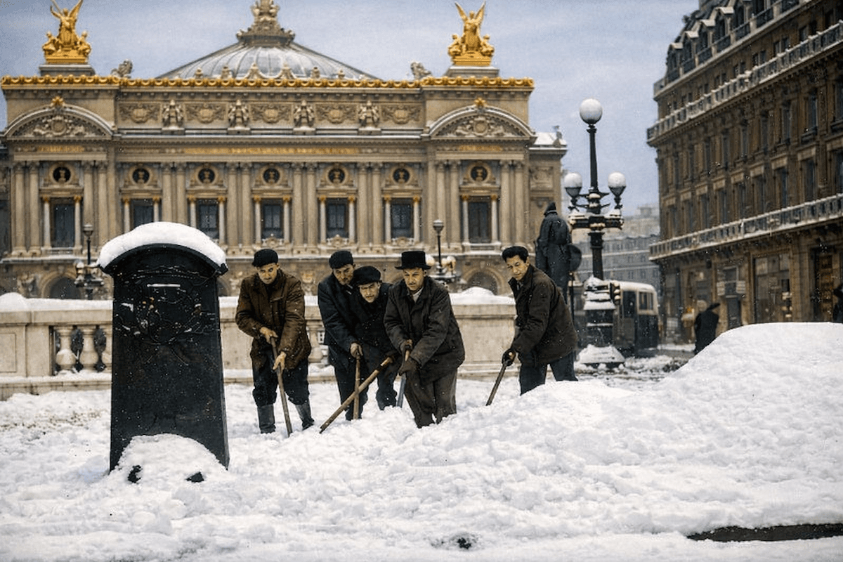 L'utilisation de chasse-neige devenue nécessaire dans Paris à la fin du mois de février 1948 - archives meteo-paris.com