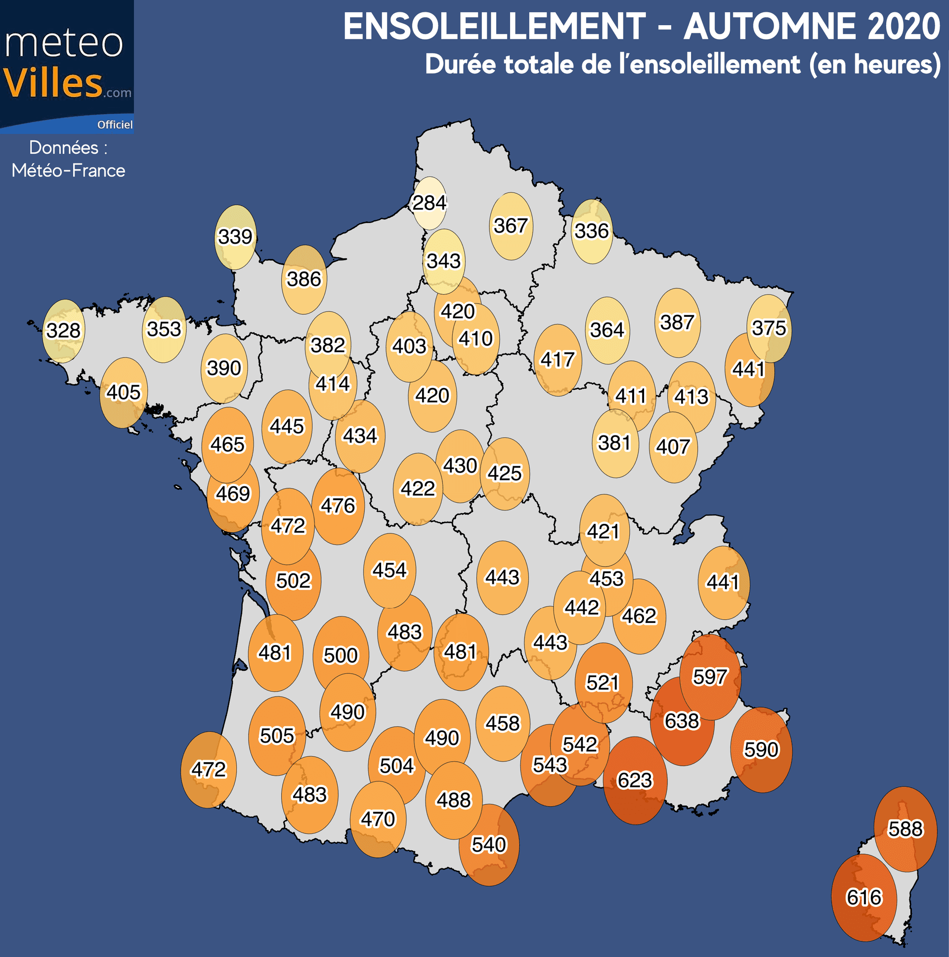 Retrouvez-ci-dessous les détails de ces 3 mois d’automne au niveau de l’ensoleillement :