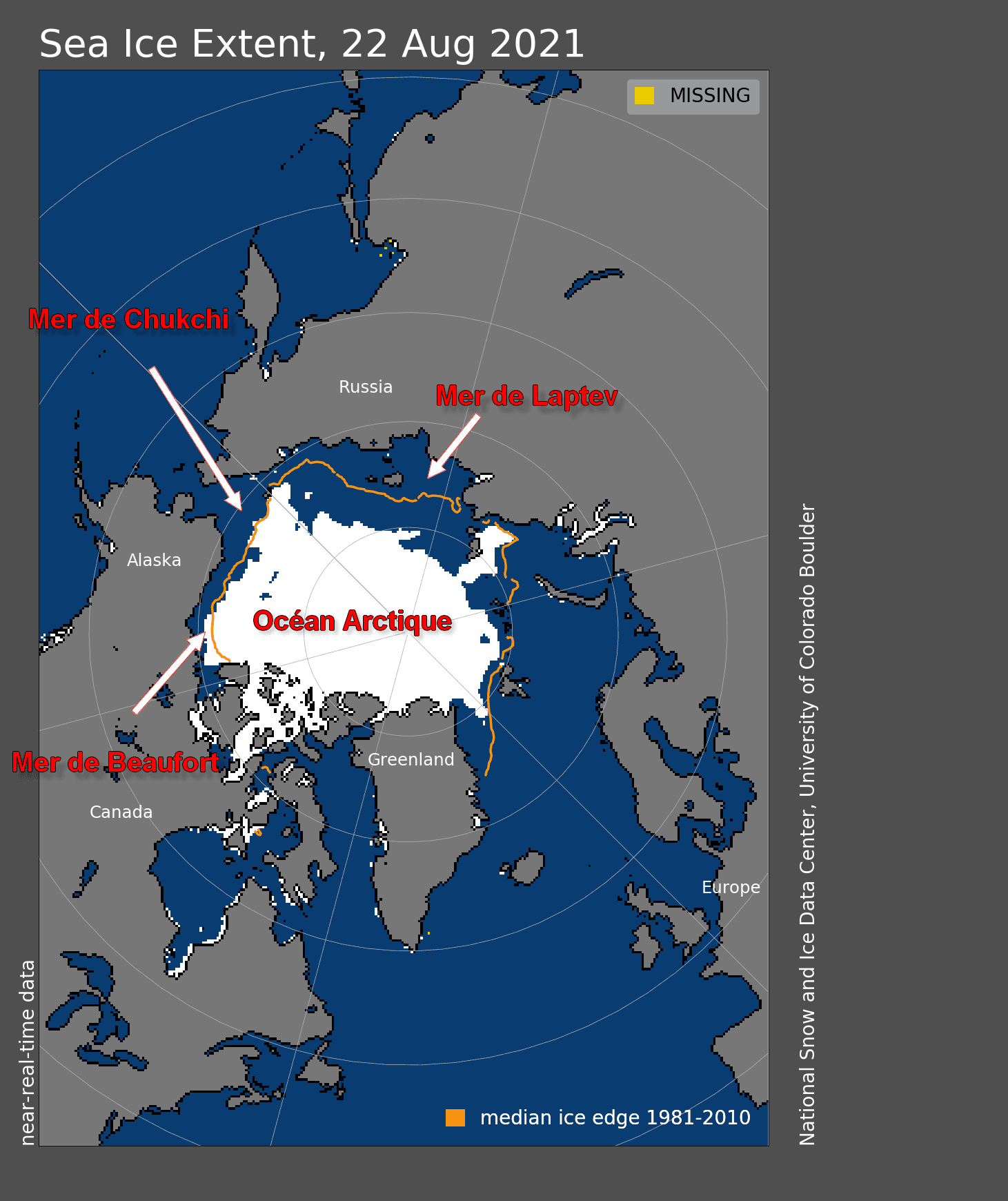 Banquise arctique : A quelques semaines du minimum annuel, l'extension des glaces à la mi-août 2021