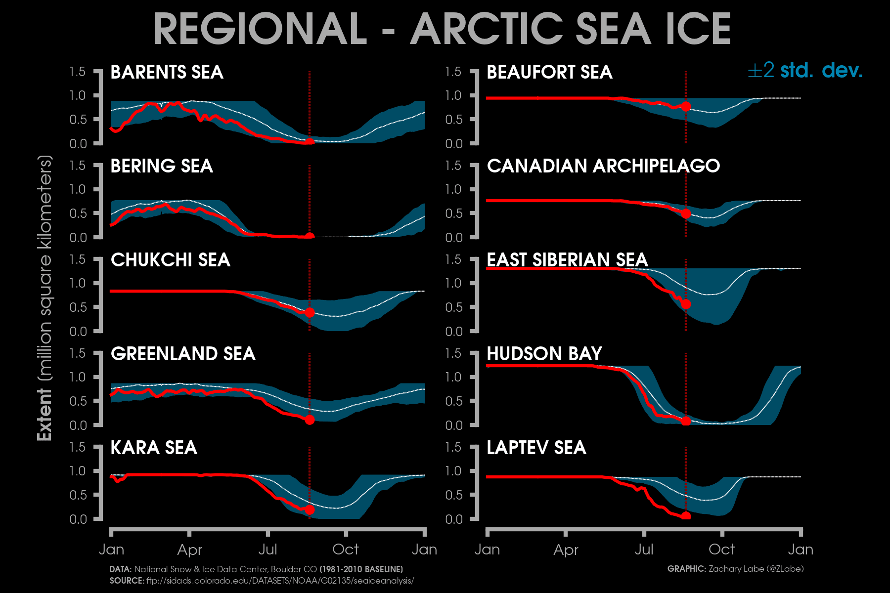 Superficie régionale de la glace arctique au 20 août 2021 - Zachary Labe