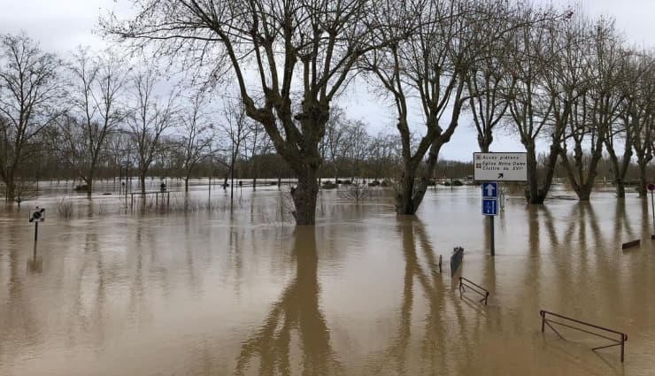 En ce qui concerne les précipitations, les deux premiers mois de l'hiver ont été remarquablement arrosés, avec une succession de perturbations océaniques (lire notre chronique météo réactualisée en permanence >). Des précipitations abondantes occasionnant des crues et inondations notamment à la fin janvier et début février, allant jusqu'au déclenchement de deux vigilances rouge Inondations dans le sud-ouest du pays. C'est le cas notamment de la Garonne à Marmande où la crue a atteint une cote de 10m20, du jamais vu en 40 ans !