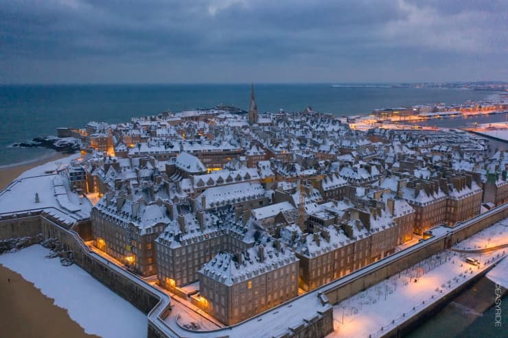 Environ 5 cm de neige sur Saint-Malo le matin du 10 février 2021 - via EasyRide Videos (notre article ici>>>)