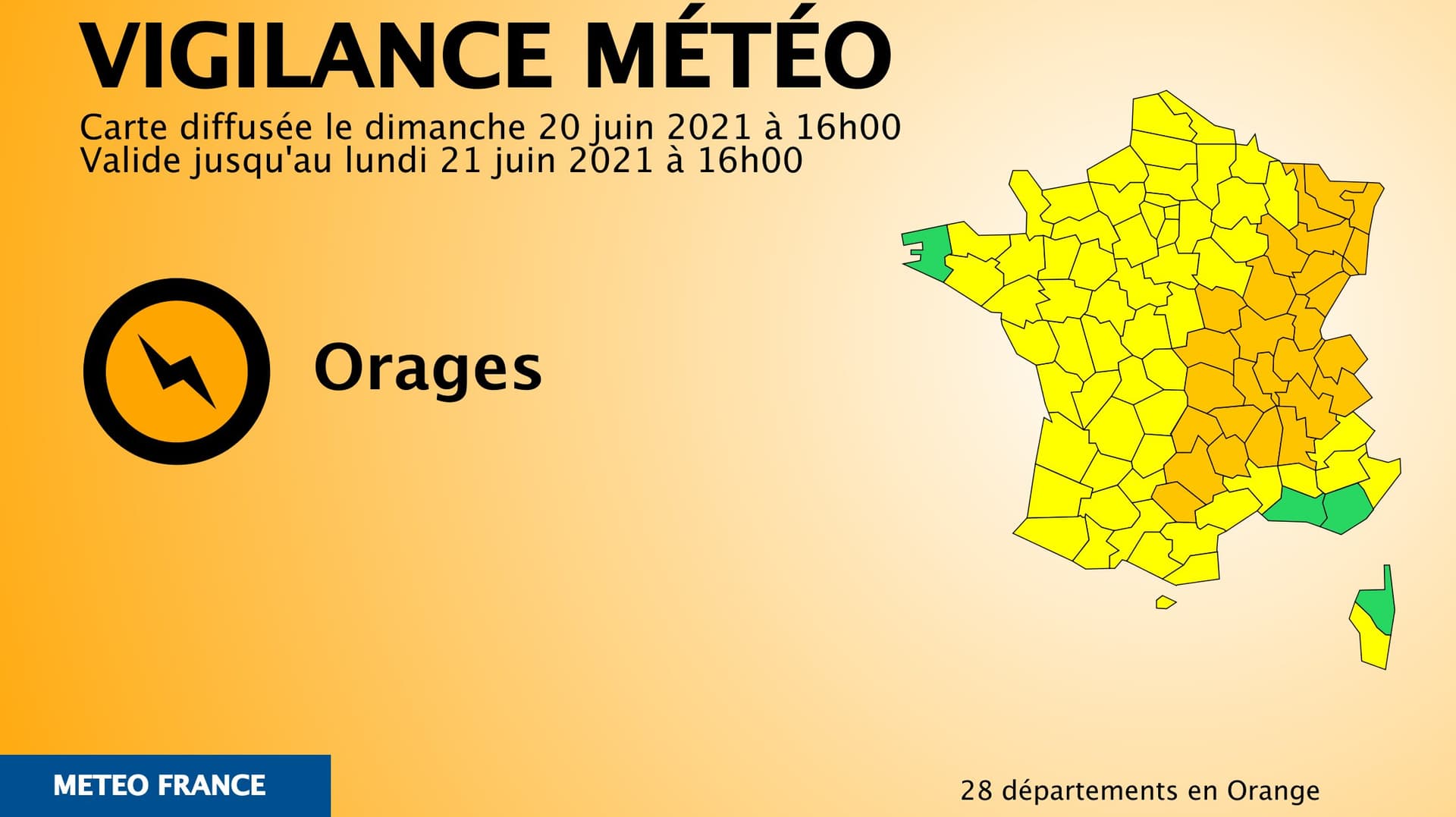 Carte de vigilance du dimanche 20 juin 2021 à 16h00 - Météo-France