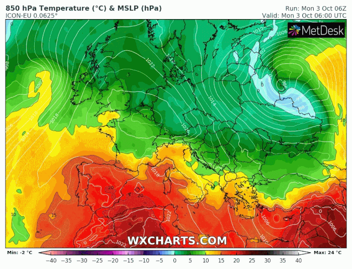 Animation des masses d'air du lundi 3 au mercredi 5 octobre 2022 - via wxcharts.com