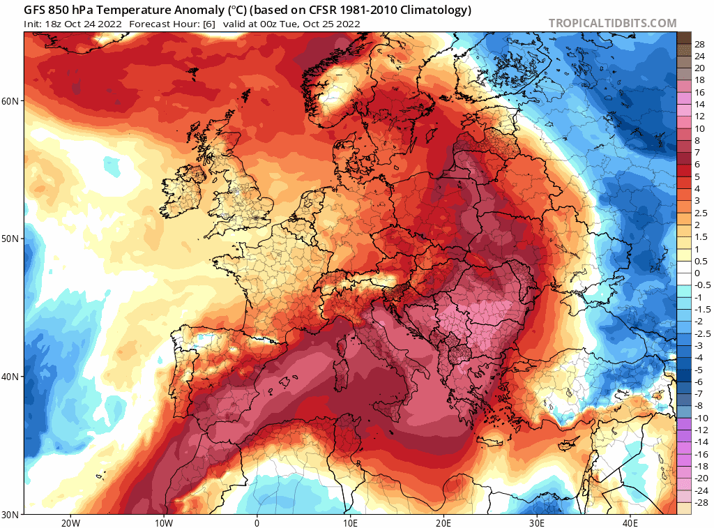 Anomalie de la masse d'air du mardi 25 au dimanche 30 octobre 2022 – via tropicaltidbits.com