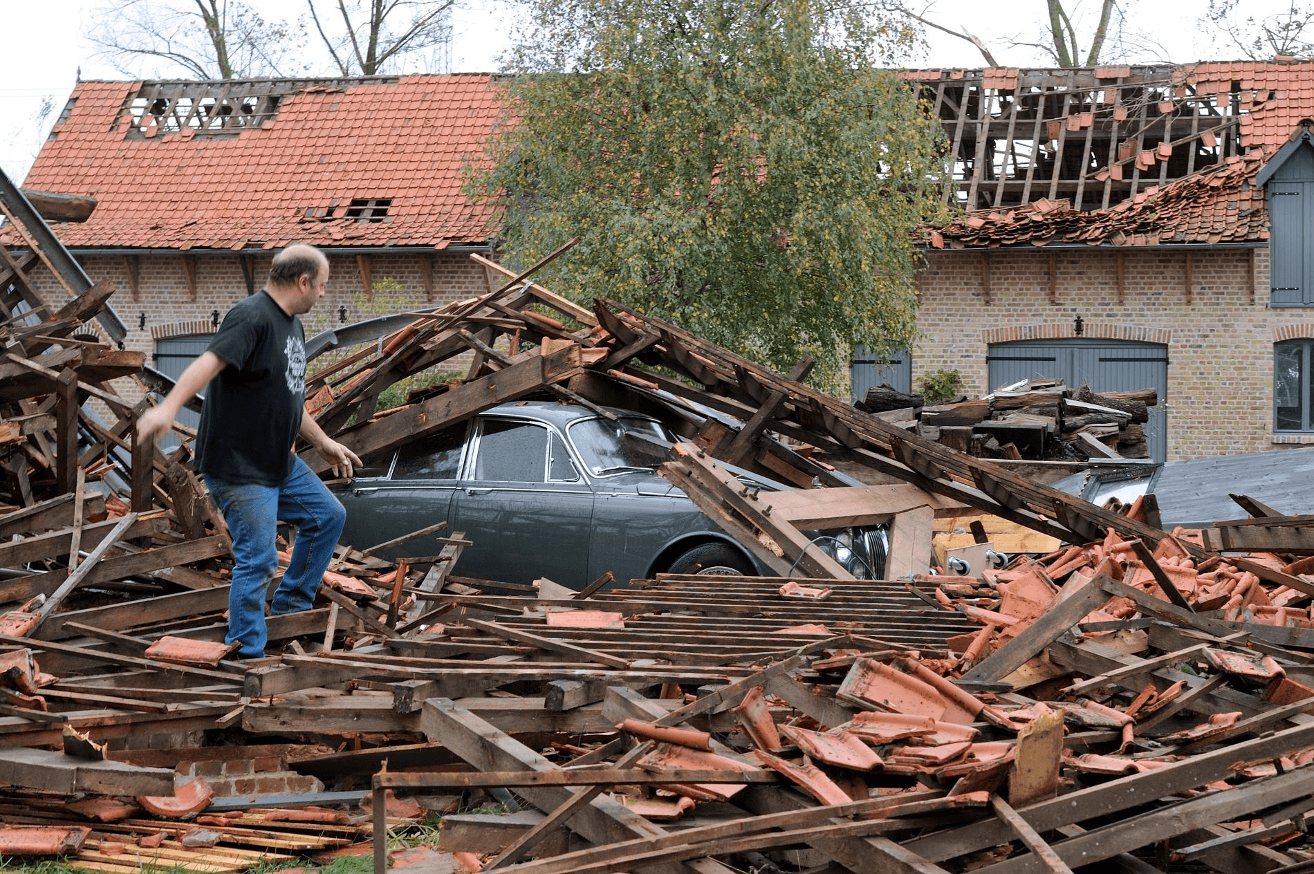 Gros dégâts à Bailleul (Nord) après une tornade du dimanche 20 octobre 2013 – photo Philippe Huguen / AFP