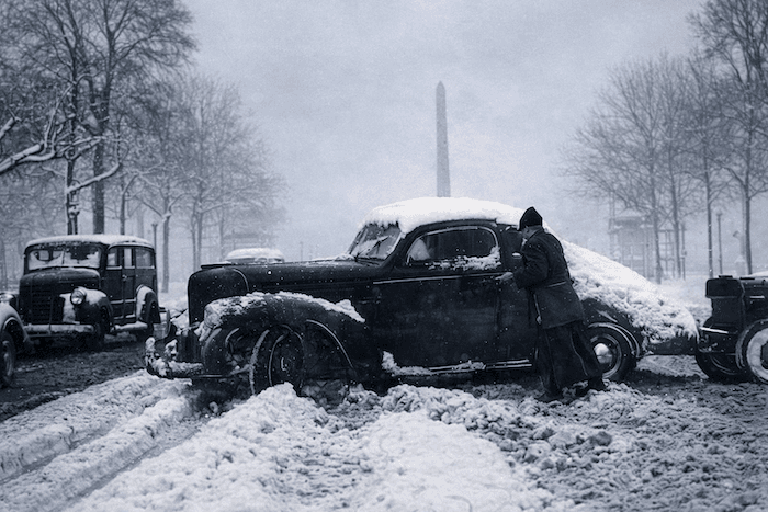 Autrefois, le déblaiement des rues était organisé facilement grâce à quelques affiches et un appel dans les journaux, et une foule de gens venait s’embaucher. Mais en ces temps de guerre (et malgré le fait que Paris et une grande partie de la France ne soient plus occupées), la situation est bien plus complexe. Les stocks de sel municipaux sont insuffisants et les balayeuses automobiles ont disparu. Si la main d’œuvre de chômeurs est nombreuse, sa réquisition s’avère difficile. Il faudra donc quatre jours avant que Paris ne soit partiellement déblayée, avec une priorité donnée aux rues les plus empruntées par les véhicules militaires.