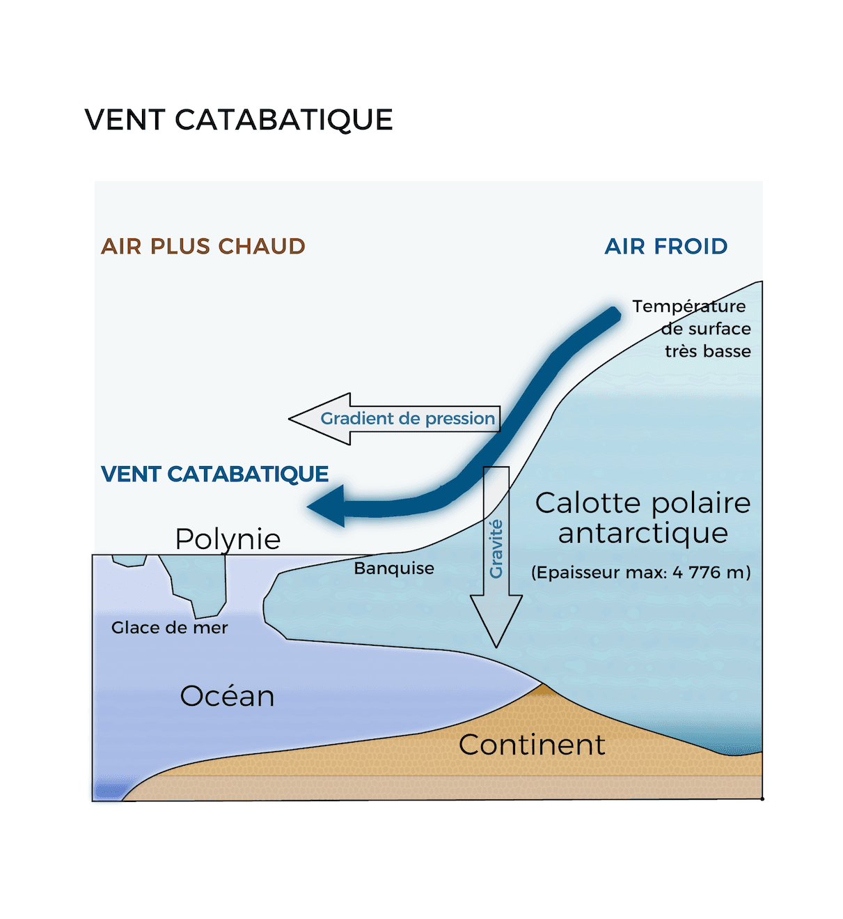 Schéma de fonctionnement du vent catabatique en Antarctique - extrait du livre "Météo Extrême"- éditions Guillaume Séchet