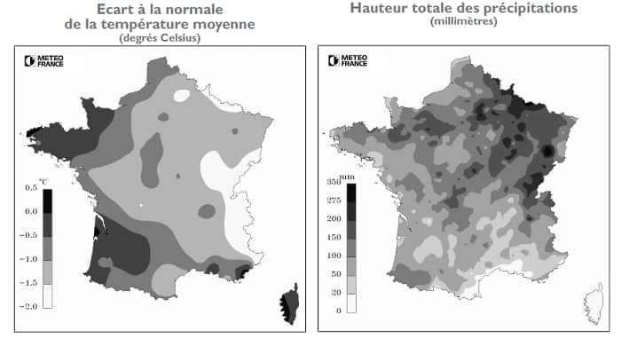 Anomalies thermiques et quantités de pluie en France en juillet 2000 - via Météo France