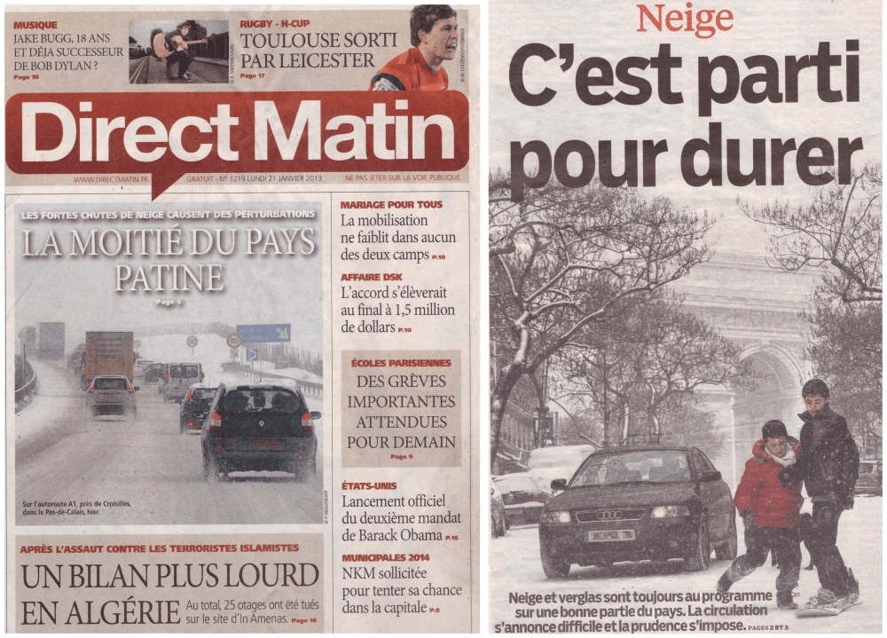 Coupures de presse sur les épisodes neigeux du mois de janvier 2013 – Chronique Météo Villes