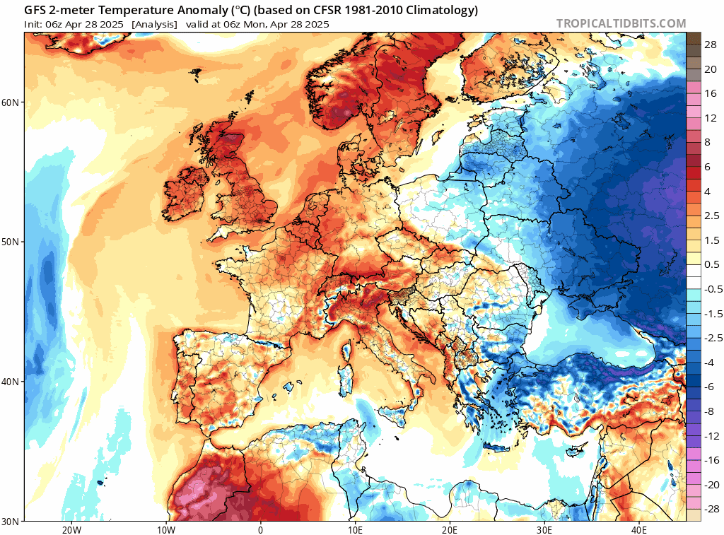 Animation des anomalies de températures à 2m du 28 avril au 4 mai 2025 – Via TropicalTidBits