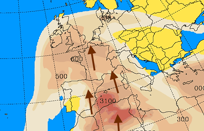 Avec le flux s'orientant au secteur sud, des poussières de sable du Sahara seront présentes dans le ciel de France durant une bonne partie de cette semaine du 3 au 9 mars 2025.