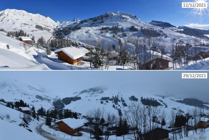 Comparaison au Grand Bornand (Haute-Savoie) entre le 12 et le 29 décembre 2021 - webcam Skaping