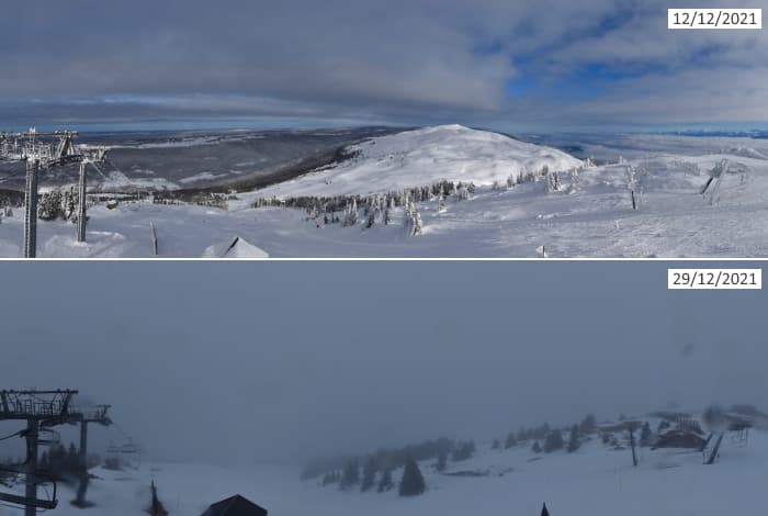 Comparaison à la station du Lioran (Cantal) entre le 12 et le 29 décembre 2021 - via lelioran.com
