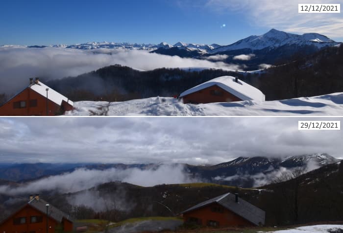 Comparaison aux chalets d'Iraty (Pyrénées-Atlantiques) entre le 12 et le 29 décembre 2021 - via lelioran.com