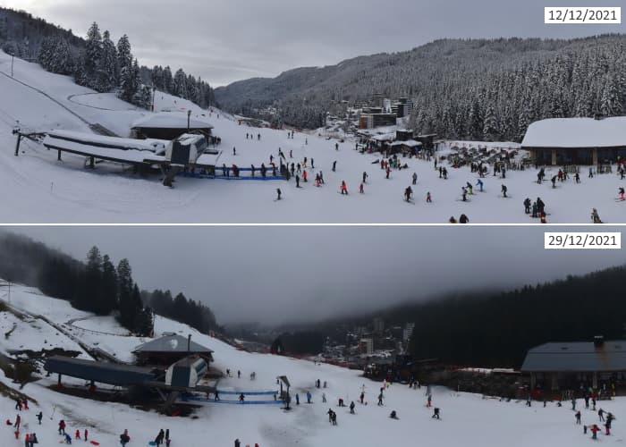 Comparaison à la station de la Bresse dans les Vosges entre le 12 et le 29 décembre 2021 - webcam Skaping