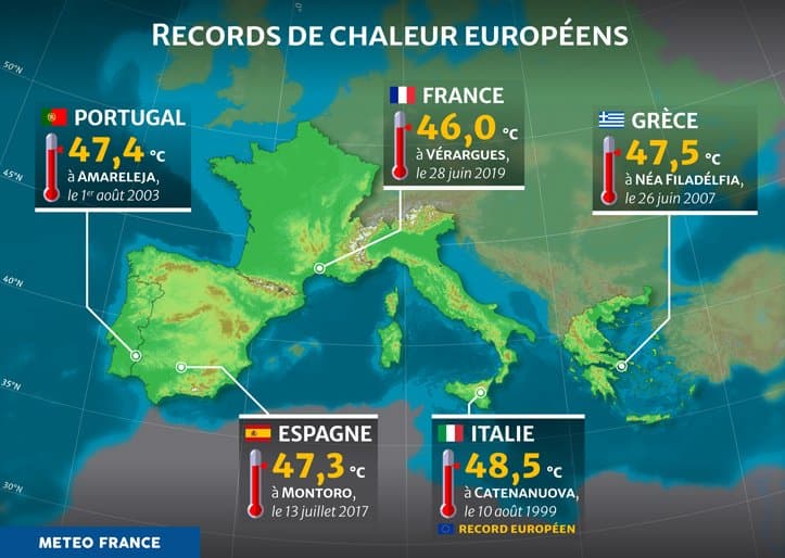 Compte tenu des modélisations numériques envisageant parfois plus de 44/45°C ce dimanche sur de larges zones, il est possible que le record officiel soit approché voire localement dépassé sur le Sud du pays. C’est néanmoins durant la journée de lundi que ce record est le plus menacé avec des modélisations suggérant des pointes à plus de 46/47°C près de Murcie. Avec de telles valeurs issues des données brutes, il est possible d'envisager que le record Européen de chaleur soit également approché !