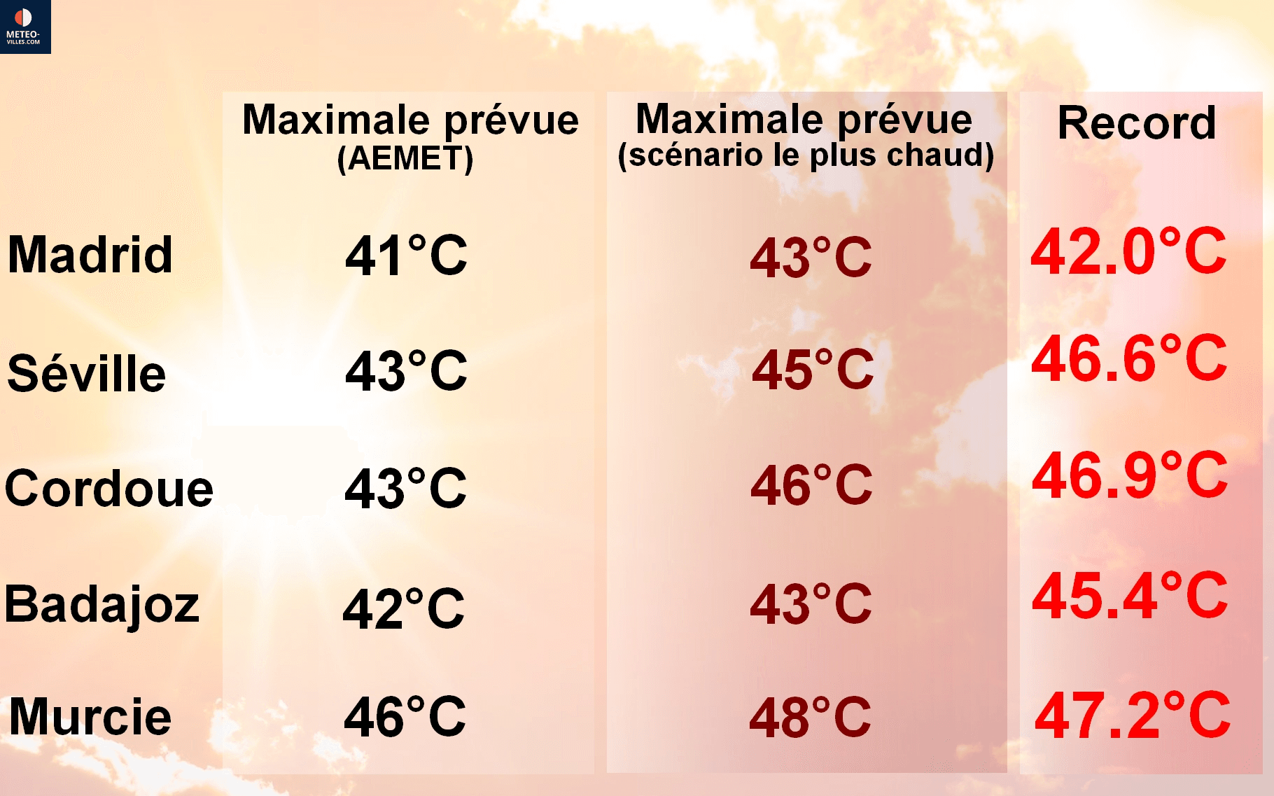 Températures prévues sur plusieurs villes espagnoles et records officiels de chaleur associés – Météo-Villes