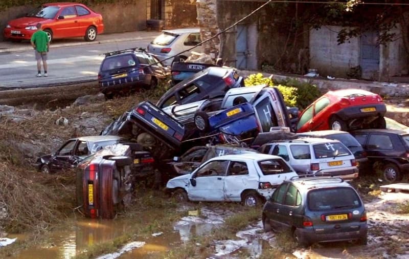 Dégâts suite aux inondations destructrices des 8 et 9 septembre 2002 dans le Gard – AFP