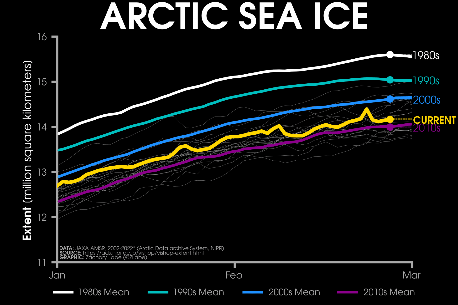 Évolution de la banquise arctique durant le mois de février 2022 – Zachary Labe – JAXA