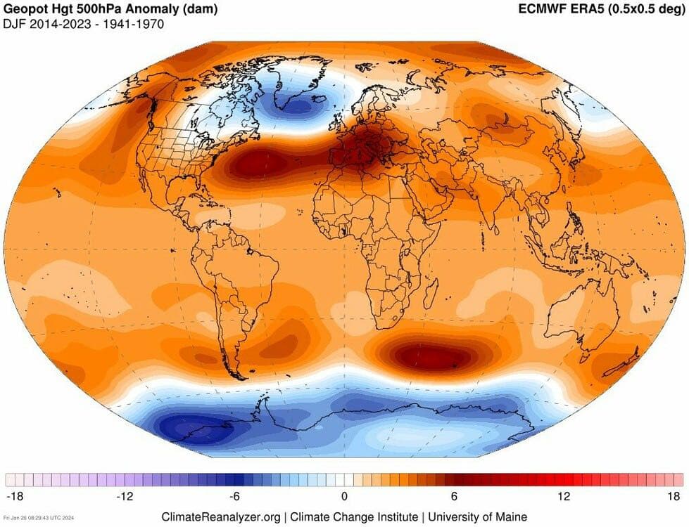 Evolution du géopotentiel 500hPa sur la période 2014 - 2023 - ClimateReanalyzer
