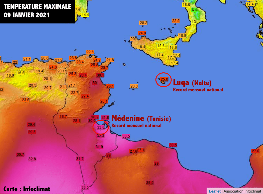 Température maximale observée le 09 janvier 2021 - Infoclimat