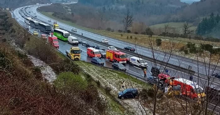 Carambolage suite à la grêle sur l'A89 ce dimanche 22 mars – Photo : Thierry Boutillier via Le Progrès