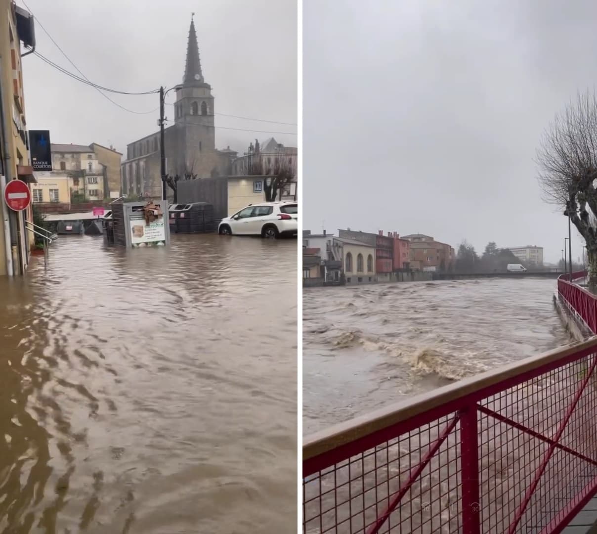 Ailleurs, la quasi-totalité des cours d'eau sont en alerte près des Pyrénées avec la plupart observant des niveaux en hausse ou des débordements parfois dommageables ce lundi après-midi, c'est par exemple le cas de nombreux affluents de la Garonne comme l'Hers qui sortait de son lit près de Mirepoix en milieu de journée.