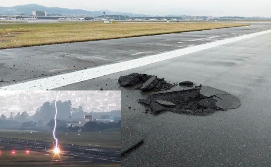 Impact de foudre et dégâts associés sur une des piste de l’aéroport de Sao Paulo le 8 mars dernier – Via Aero Magazine