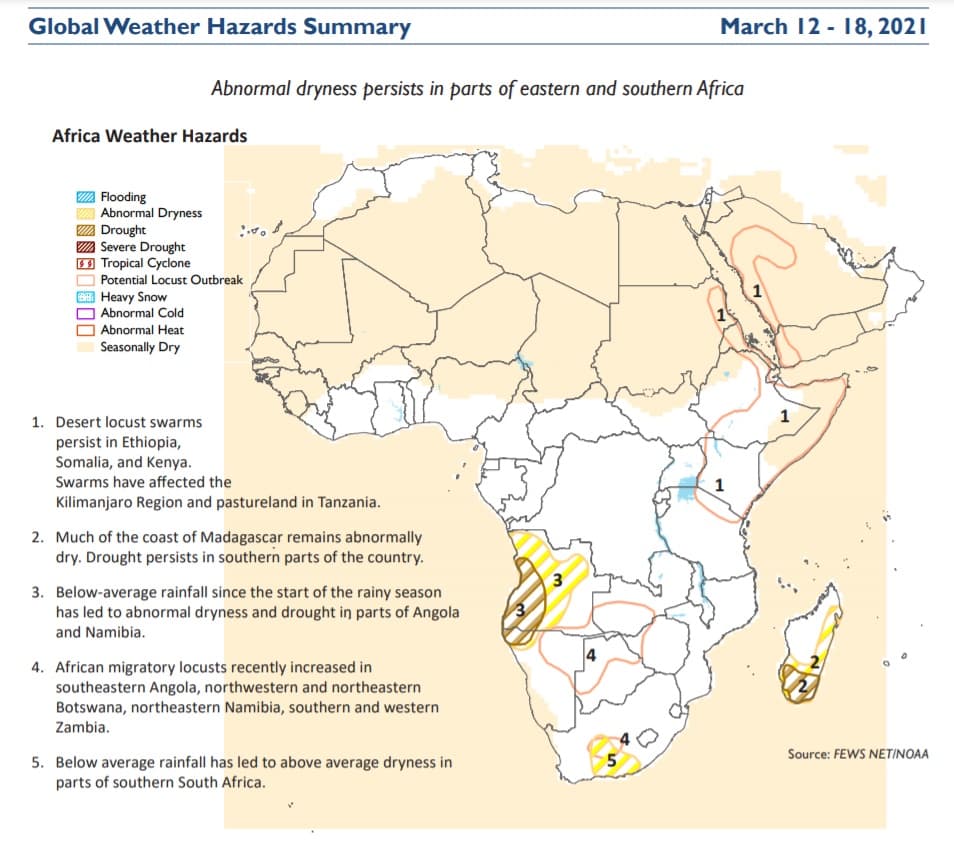 Evénements marquants durant les 7 derniers jours sur le continent Africain – Via NOAA