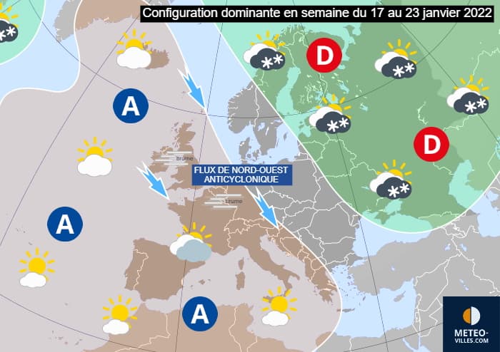 Projection de la configuration dominante pour la semaine du 17 au 23 janvier 2022 - Météo Villes