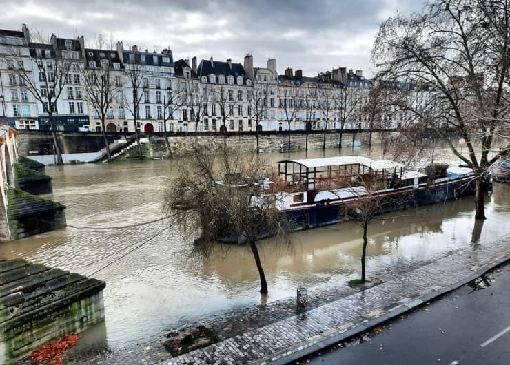 De son côté, la capitale est en train d'assister à une crue de la Seine. Ce mercredi 3 février 2021, le niveau du fleuve a dépassé le seuil d'interdiction de la circulation fluviale (4,30m) en atteignant une côte de 4,33m au pont d'Austerlitz. Les voies sur berges sont inondées, tout comme de nombreux quais parisiens. Cette crue reste toutefois d'ampleur limitée. Rappelons qu'en 1910, le niveau était quasiment deux fois plus haut (8,62m) !