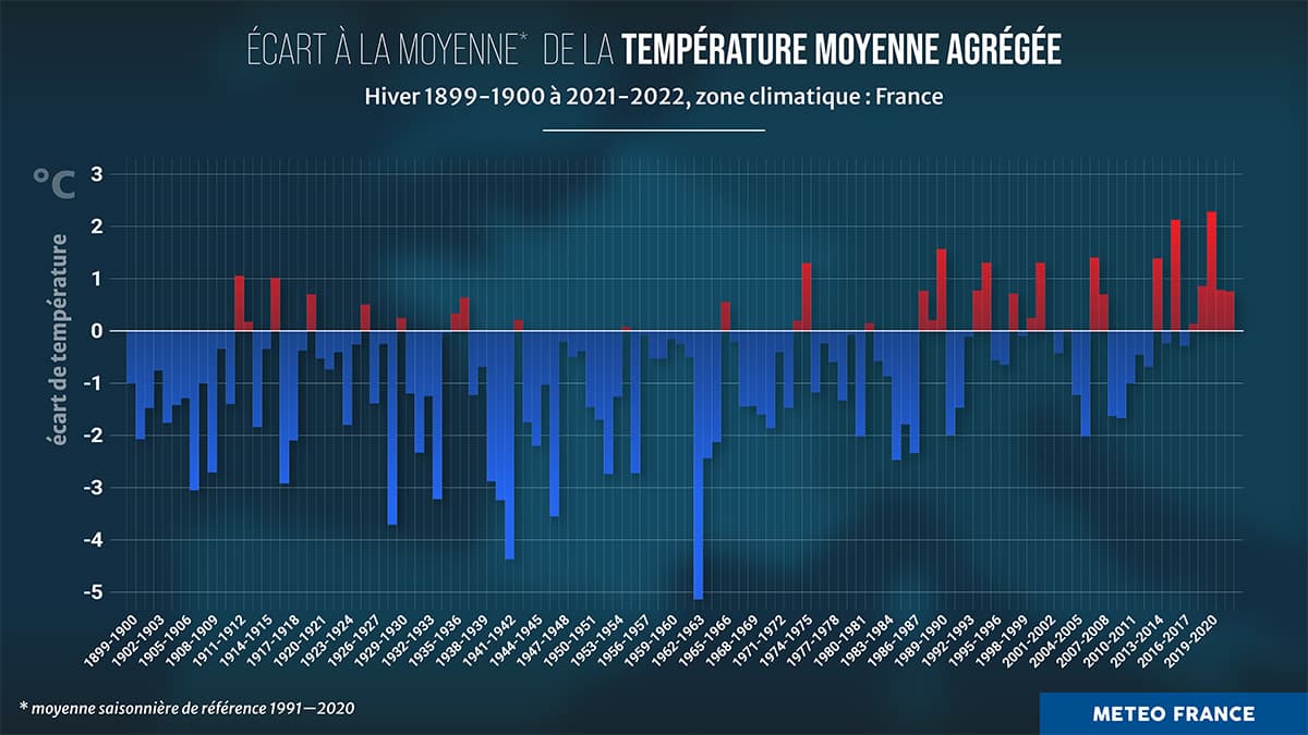 Anomalies thermiques en hiver en France entre 1899 et 2022 – Météo-France