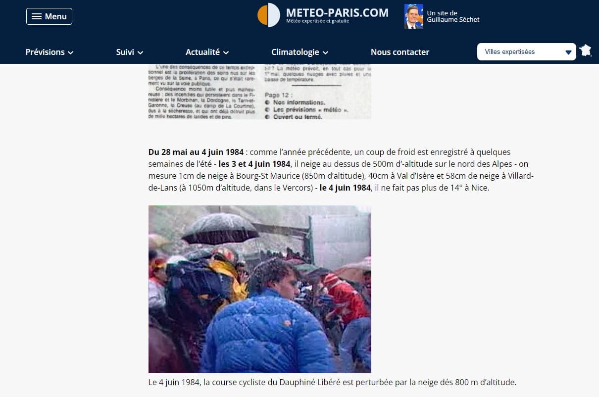Grâce à toutes ces informations du passé, Guillaume Séchet pu réaliser la rubrique "De Temps Antan", diffusée quotidiennement sur la Chaîne Météo, ainsi que plusieurs ouvrages sur les évènements météo en France, dont le livre "Quel temps ! - Chronique de la météo de 1900 à nos jours" Éditions Hermé – auteur : Guillaume Séchet - il s’agit d’une chronique abondamment illustrée répertoriant les principaux évènements météo année par année, en France depuis 1900.