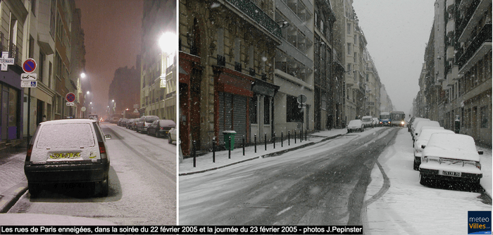 Les rues de Paris enneigées, dans la soirée du 22 février 2005 et la journée du 23 février 2005 - photos J.Pepinster