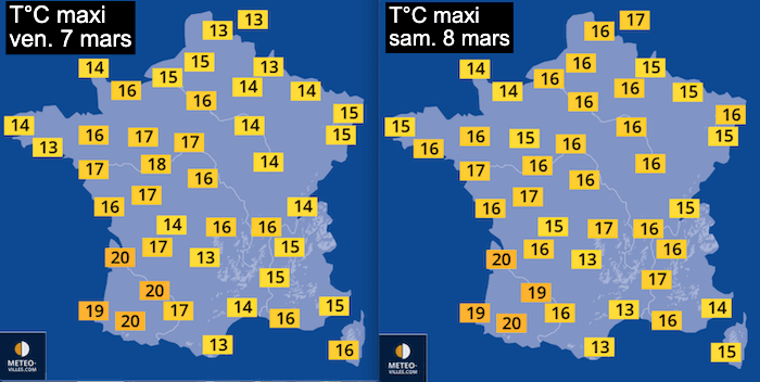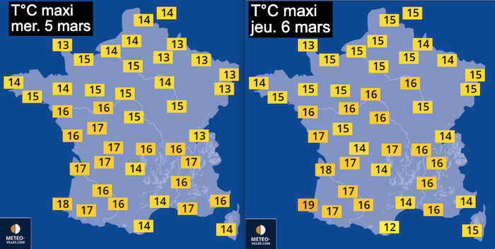 En résumé, entre gelées, nuages et pluies, les quelques journées de douceur et les températures restant inférieures à +20°C sur la quasi-totalité du pays, cette semaine ne devrait pas constituer un épisode de "douceur printanière" particulier comme nous pourrions l'imaginer.