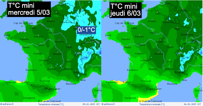 Températures minimales observées en France ce 02 mars 2025 - MeteoVilles