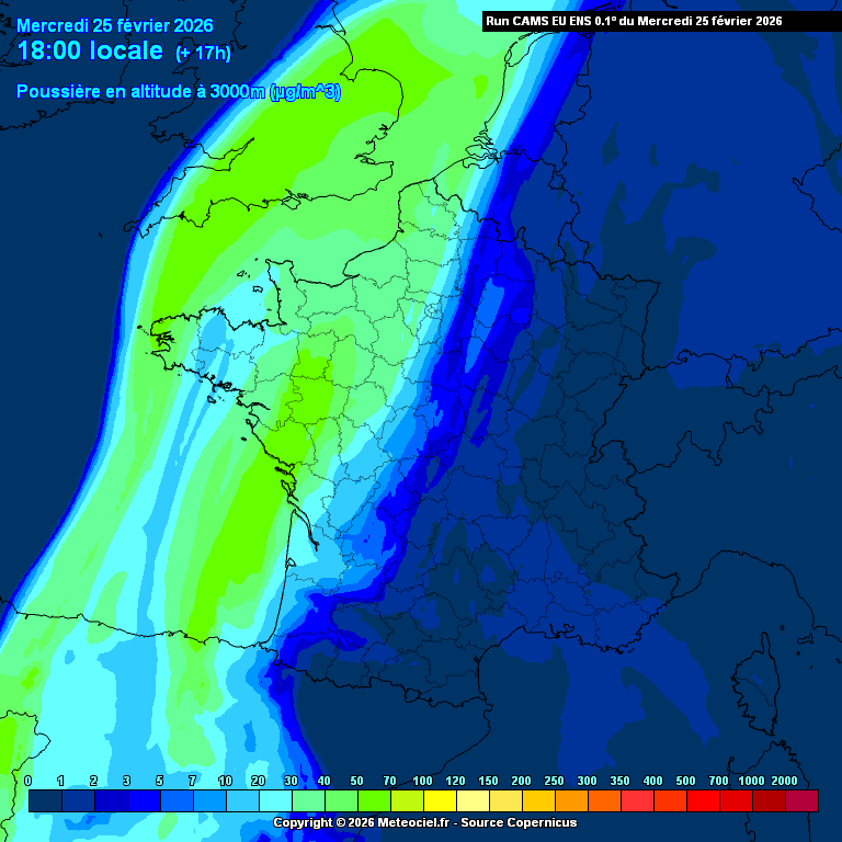 Simulation des remontées de poussière saharienne à 3000 m d'altitude d'ici mercredi soir - Meteociel