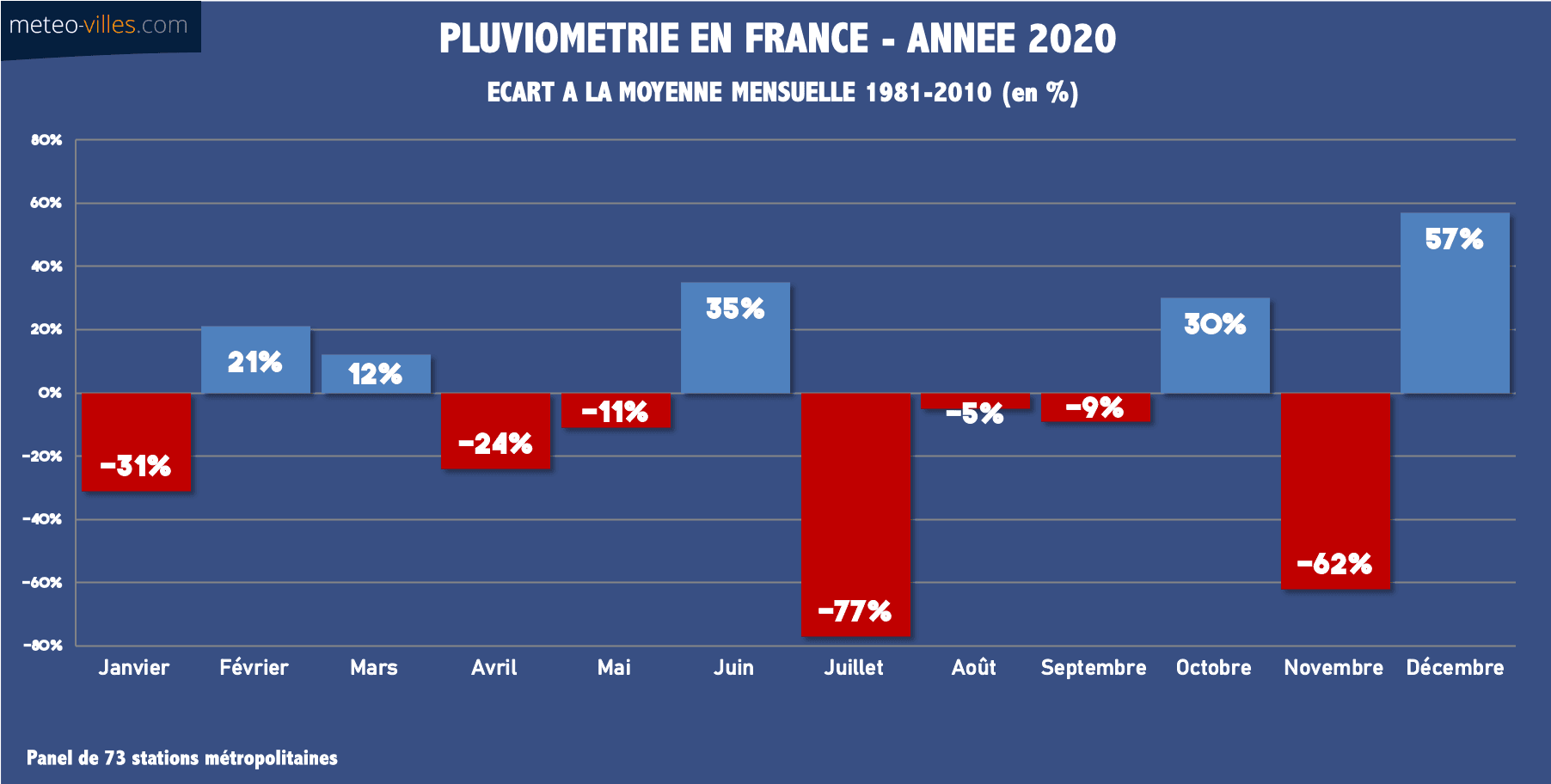 Bilan pluviométrique mensuel de l'année 2020 en France – Météo-Villes