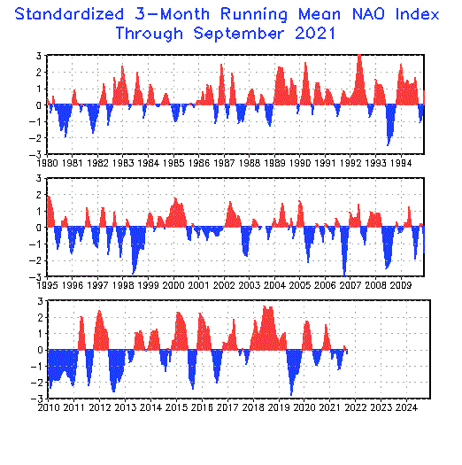 Indice d'oscillation nord-atlantique (NAO) du 27 juin au 24 octobre 2021 - via NOAA