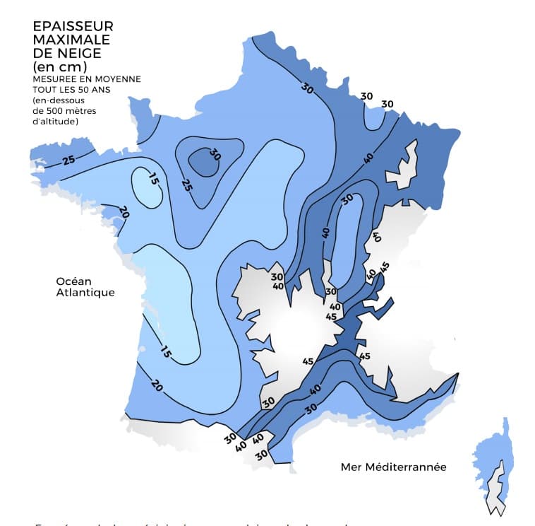 Au niveau de la neige, ce sont les zones de reliefs et les régions allant du Massif-Central au Nord-Est du pays qui sont les plus concernées.