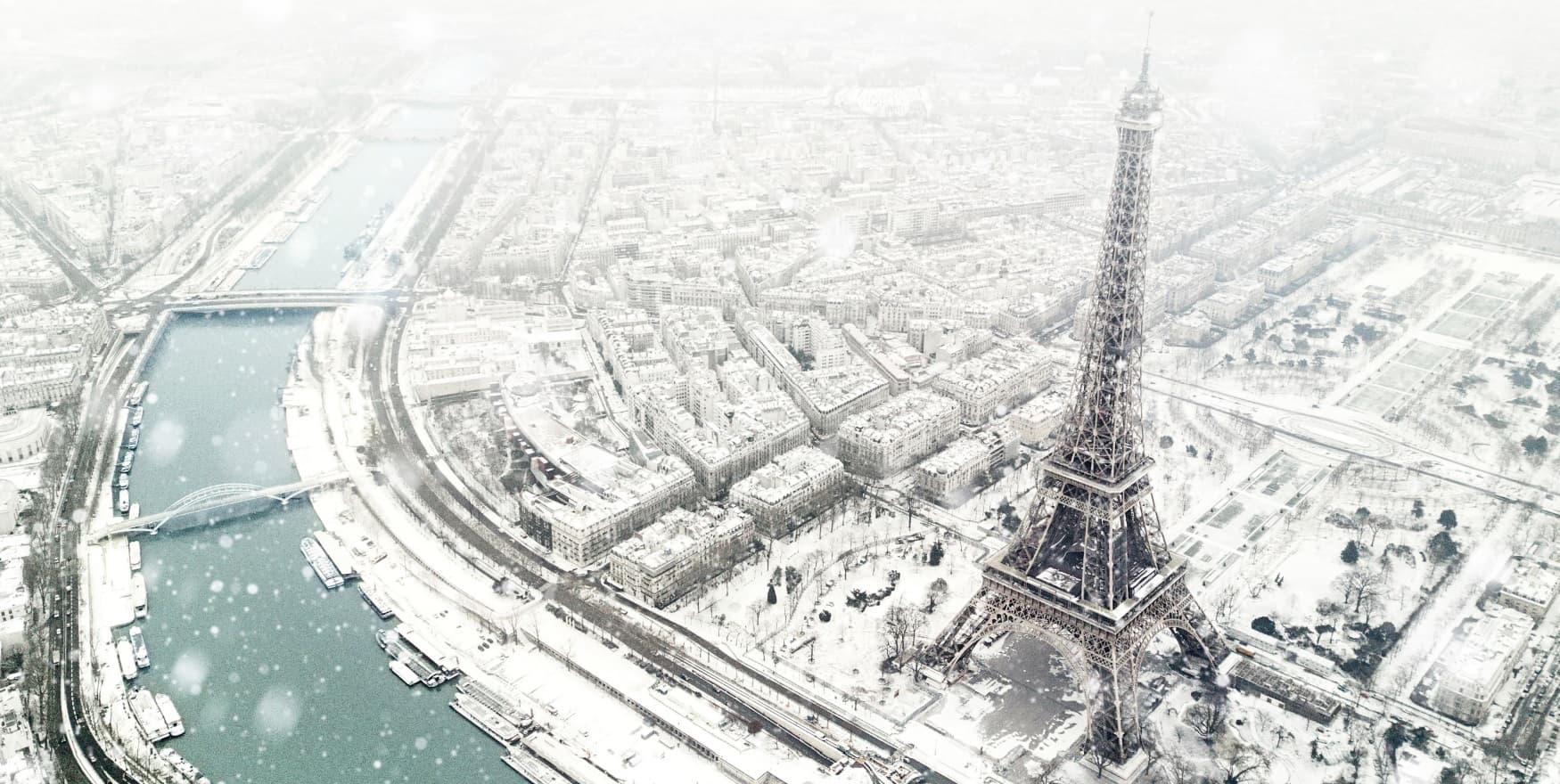 Paris sous la neige – Illustration visible pages 66 et 67 du livre METEO EXTREME