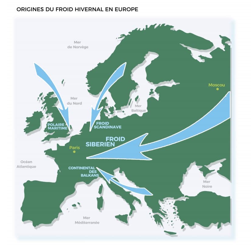 Origine du froid en France – Schéma tiré du livre METEO EXTREME p24