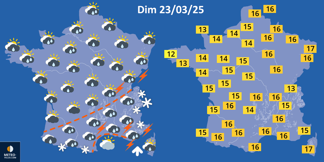 Prévisions météo et températures maximales pour le dimanche 23 mars 2025 - Météo Villes