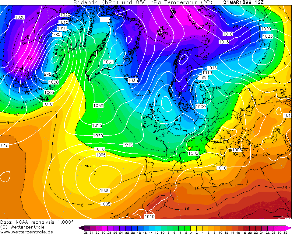Une impressionnante descente froide envahit toute la partie Nord de l'Europe, y compris la France, à l'équinoxe de printemps 1899 !